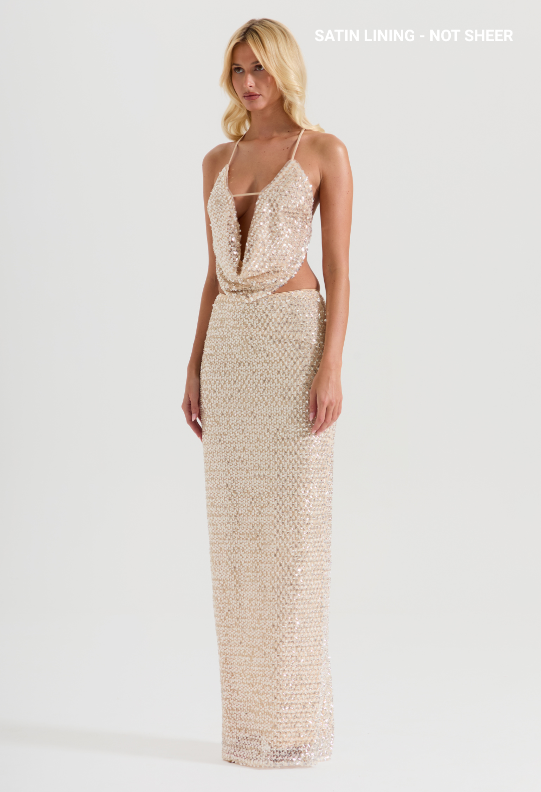 CELESTE CRYSTAL WHITE MAXI DRESS