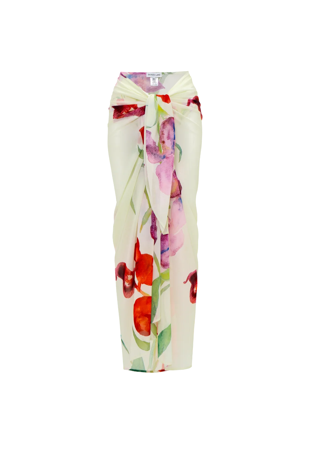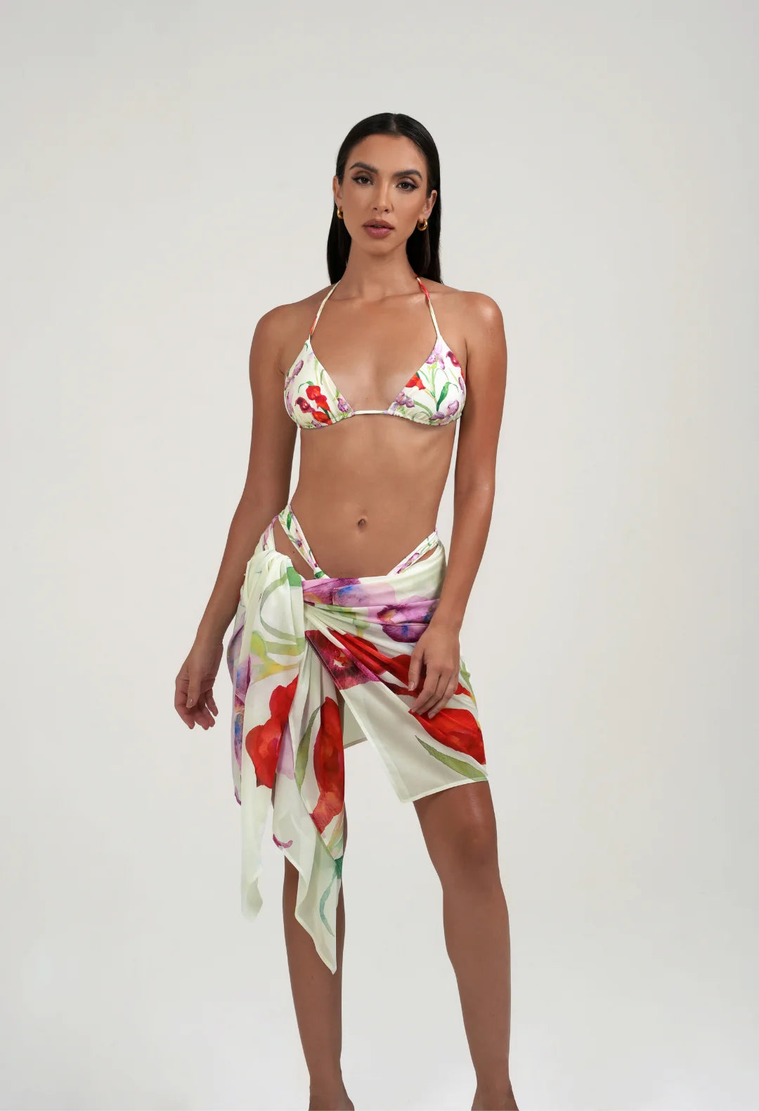 A swim set is not complete without a matching sarong. Our best selling long sarong : ‘Clovelly’ is available this season in a brand new hand painted watercolour print. Crafted from lightweight, breathable fabric, it’s designed to drape beautifully over your matching Sydney Lane swimwear, providing that extra bit of coverage when desired. Whether you wrap it as a skirt, tie as a dress, or drape over your shoulders, the Clovelly Sarong is designed to be as flexible as your summer plans. Perfect for lounging by the pool or taking a sunset stroll on the beach, this sarong is a must-have accessory for your resort wardrobe. Our Gardenia floral print is inspired by a summer meadow and hand painted with love.
