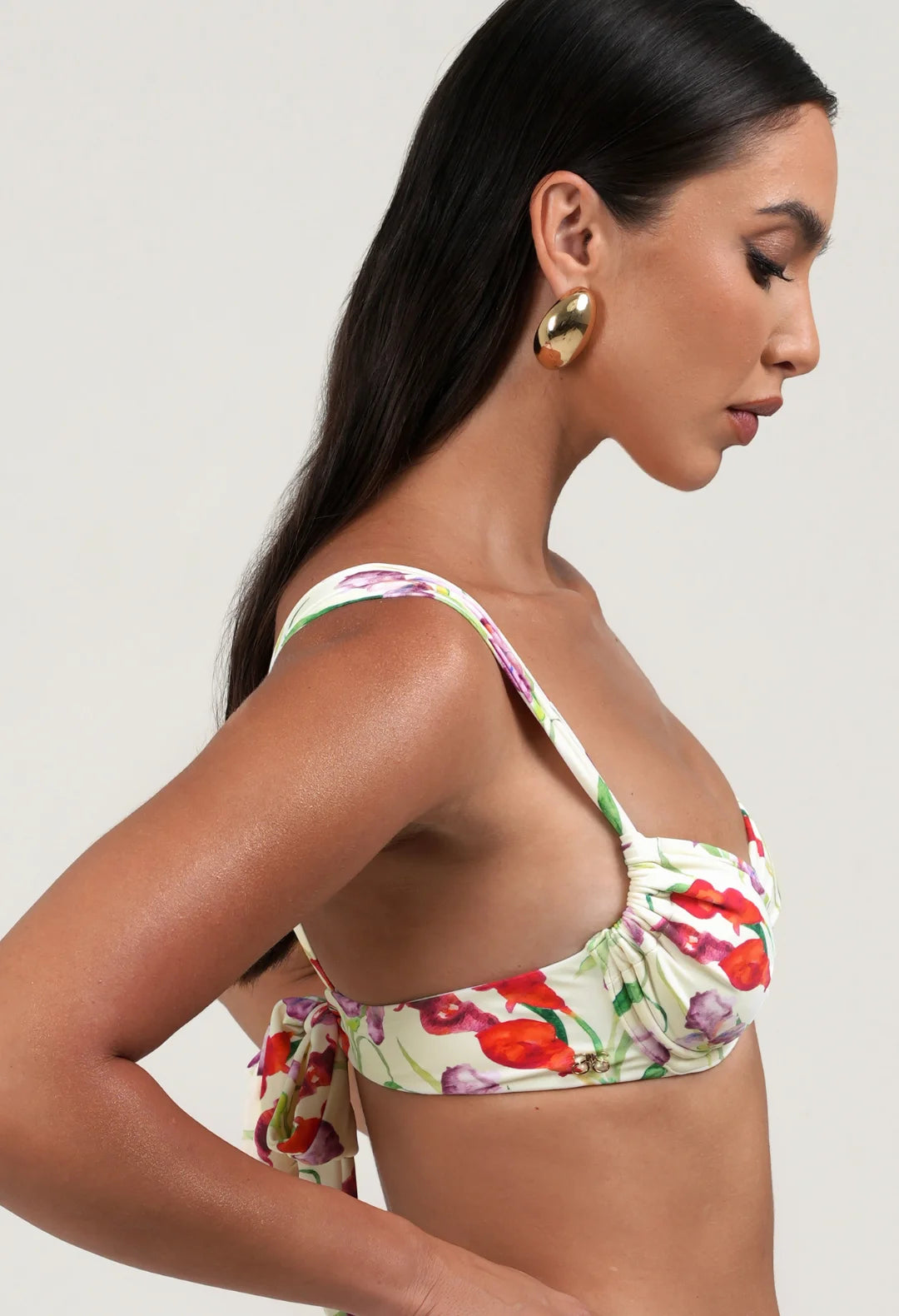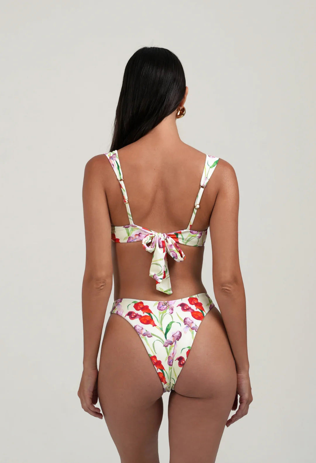 Introducing our best selling adjustable underwire bikini: ‘Hughes’ designed with your support and shape in mind. Gathered cups offer customizable coverage, allowing you to adjust as desired, whilst wide gathered straps ensure comfort without digging into the skin. Adding a unique touch, the dropped centre front and gold Sydney Lane emblem add subtle details for a hint of luxury. Complete with a tie-back closure, you can adjust and tie as desired for the perfect fit. Hughes is double lined in our buttery soft recycled, eco-friendly fabric. Our Gardenia floral print is inspired by a summer meadow and hand painted with love.