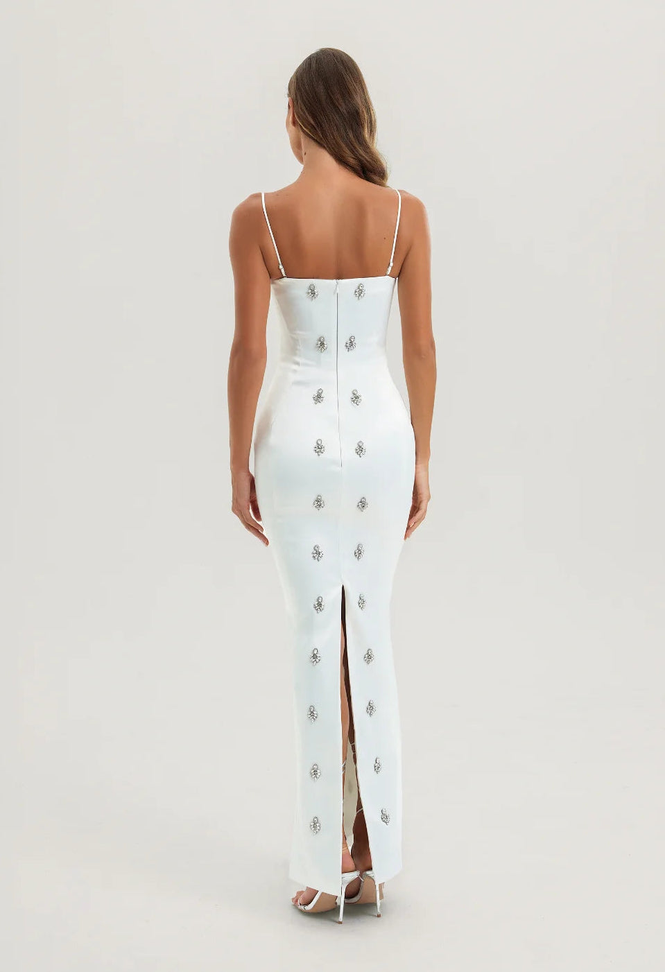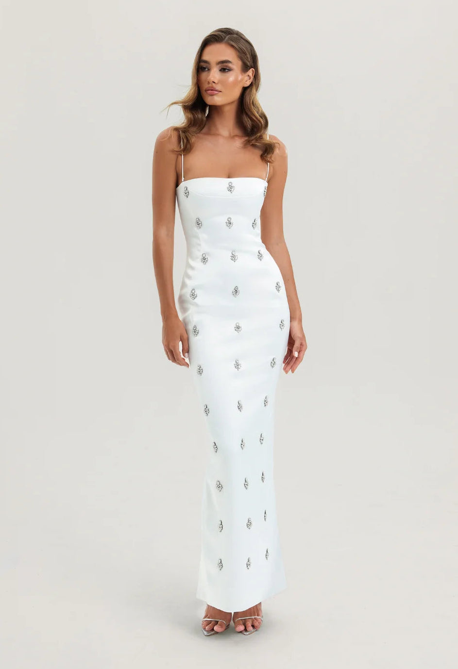 CELESTE CRYSTAL WHITE MAXI DRESS