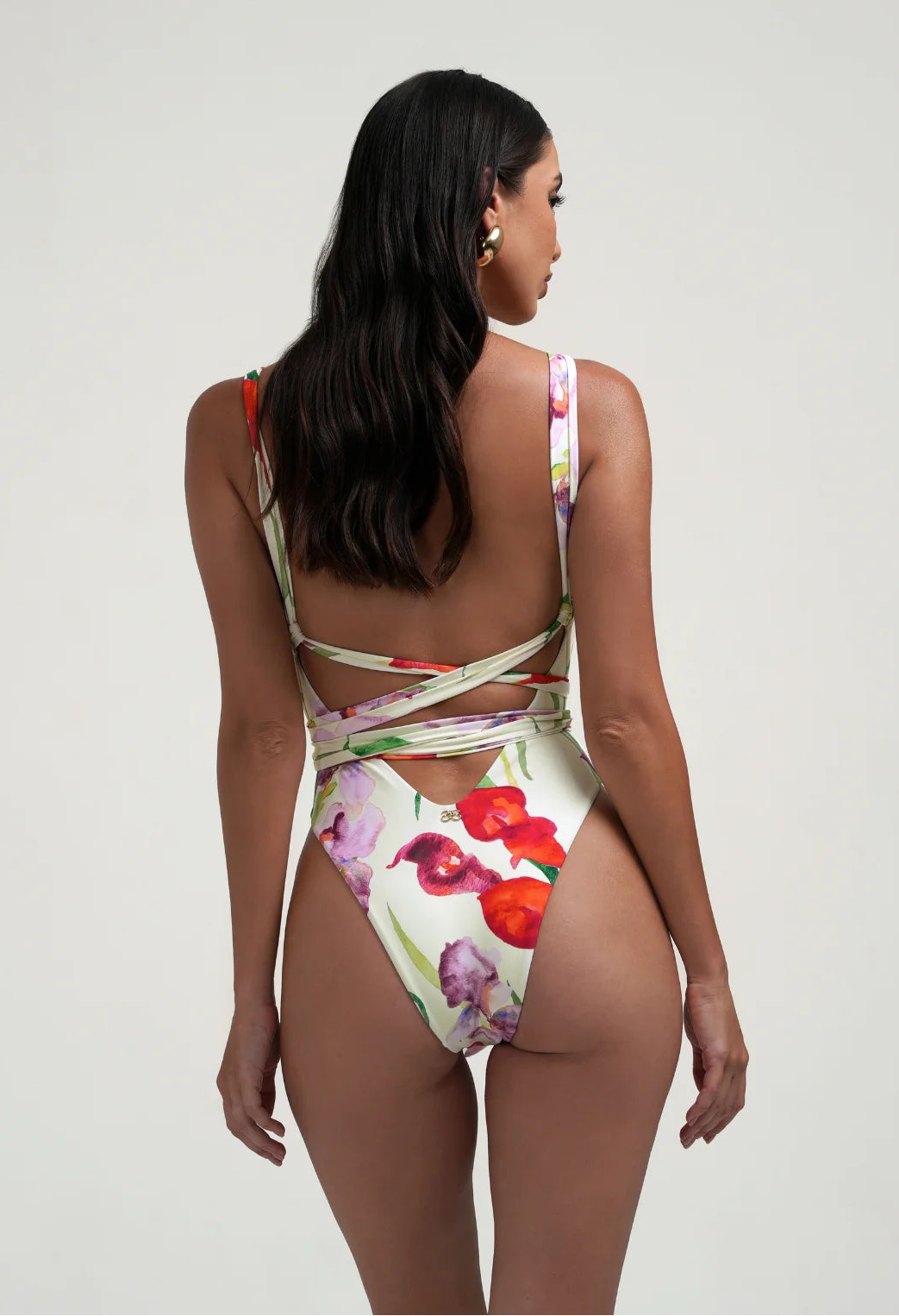 Our one of a kind Dua swimsuit is the statement one piece of the year. This totally unique design has been created with complete versatility in mind. A gathered neckline offers customizable coverage around the bust and wide straps ensure comfort without digging into the skin. Extra long cross over straps can be styled and tied as desired, creating added shape around the waist for the most flattering hourglass silhouette. A high leg and low back gives a nod to the glamorous shapes of the 80’s and 90’s. Dua is completely double lined in our super soft, buttery and recycled fabric to provide extra comfort and a seamless fit. Our Gardenia floral print is inspired by a summer meadow and hand painted with love. Style with our Clovelly long sarong for the perfect pool party day to night look.