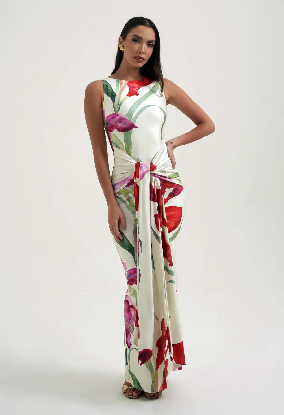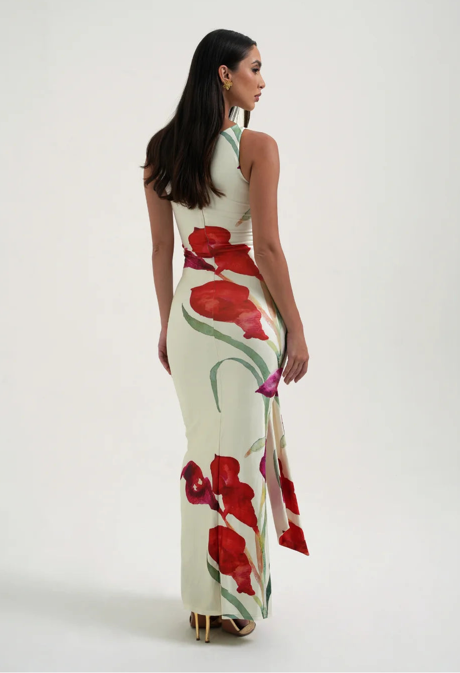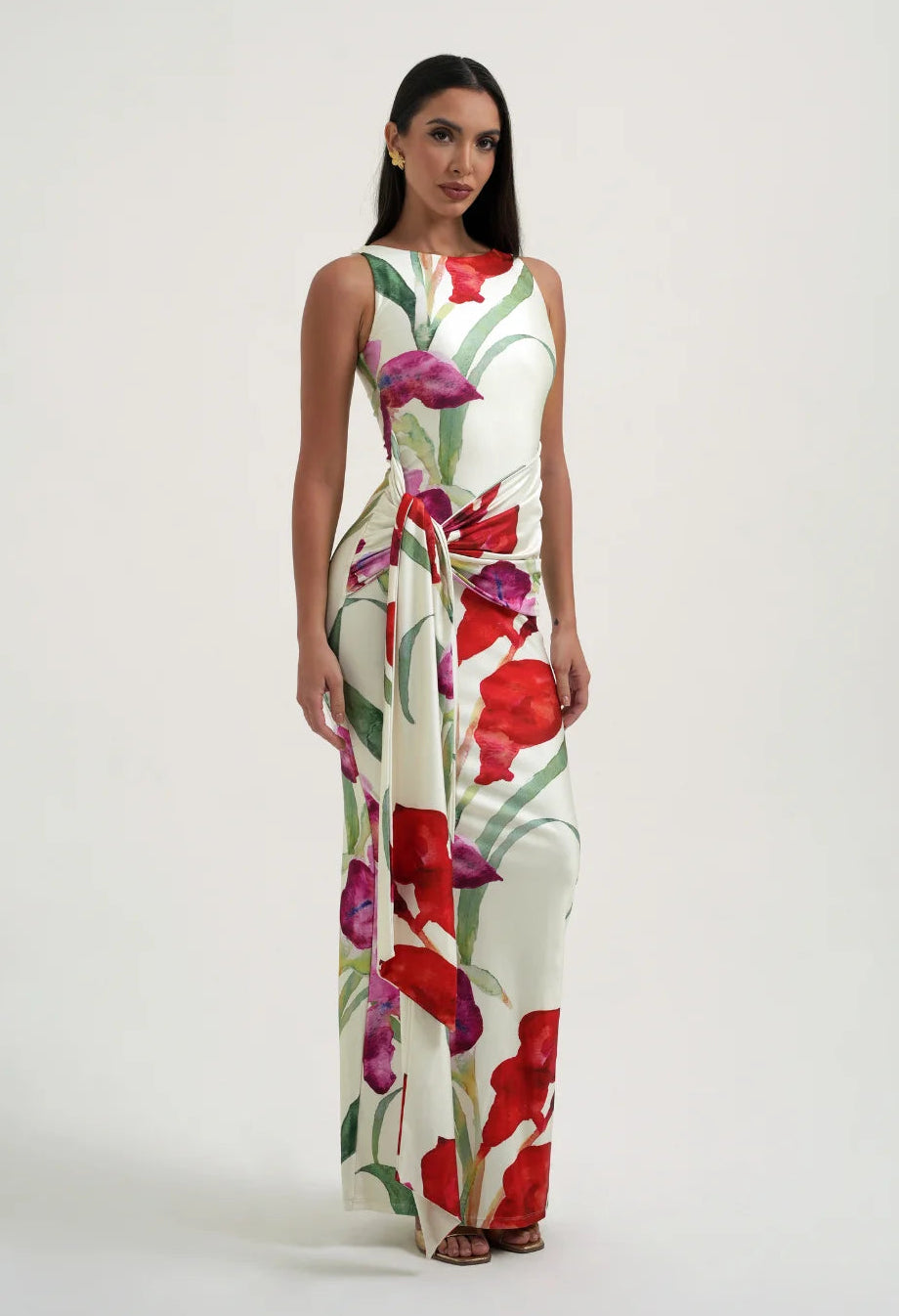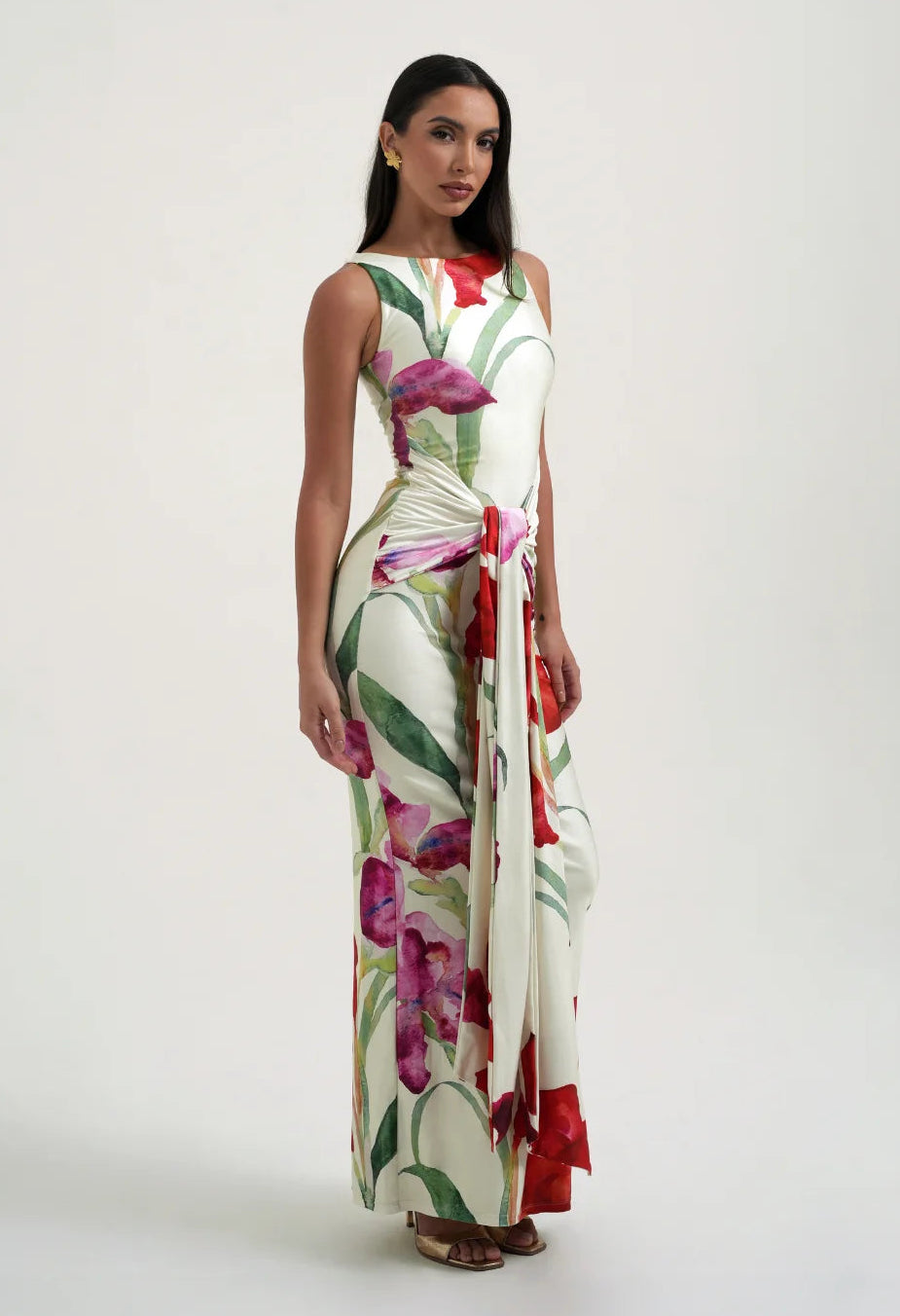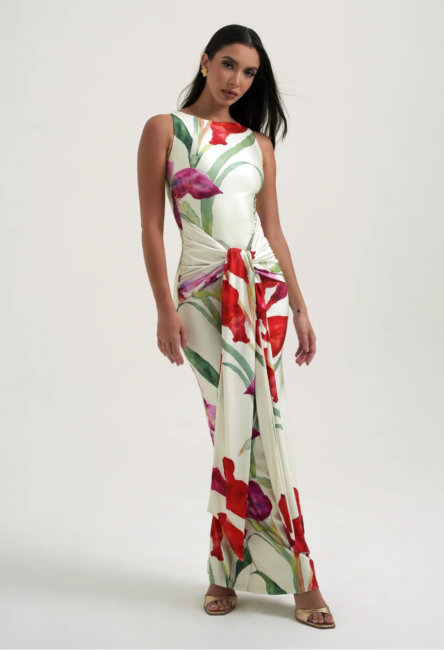 The most flattering dress for spring summer has arrived: SKYE. Crafted from a super soft yet sculpting fabric, Skye provides ultimate comfort but also shape. This double layer fabric cinches and smoothes at the same time. The multiway wrap tie can be styled as desired for the most flattering look to suit any body shape. A concealed centre back zips allows for seamless easy access and our hand painted watercolour print has been carefully placed to flatter your curves and step into spring feeling your best.